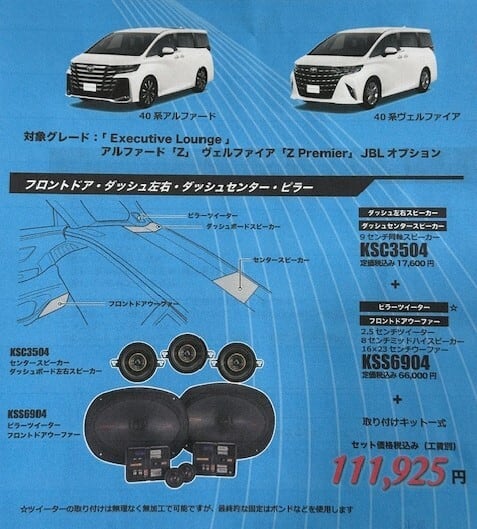 KICKER SOUND-UP PLAN 40アルファード・ヴェルファイア JBL搭載車両専用スピーカーキットです。